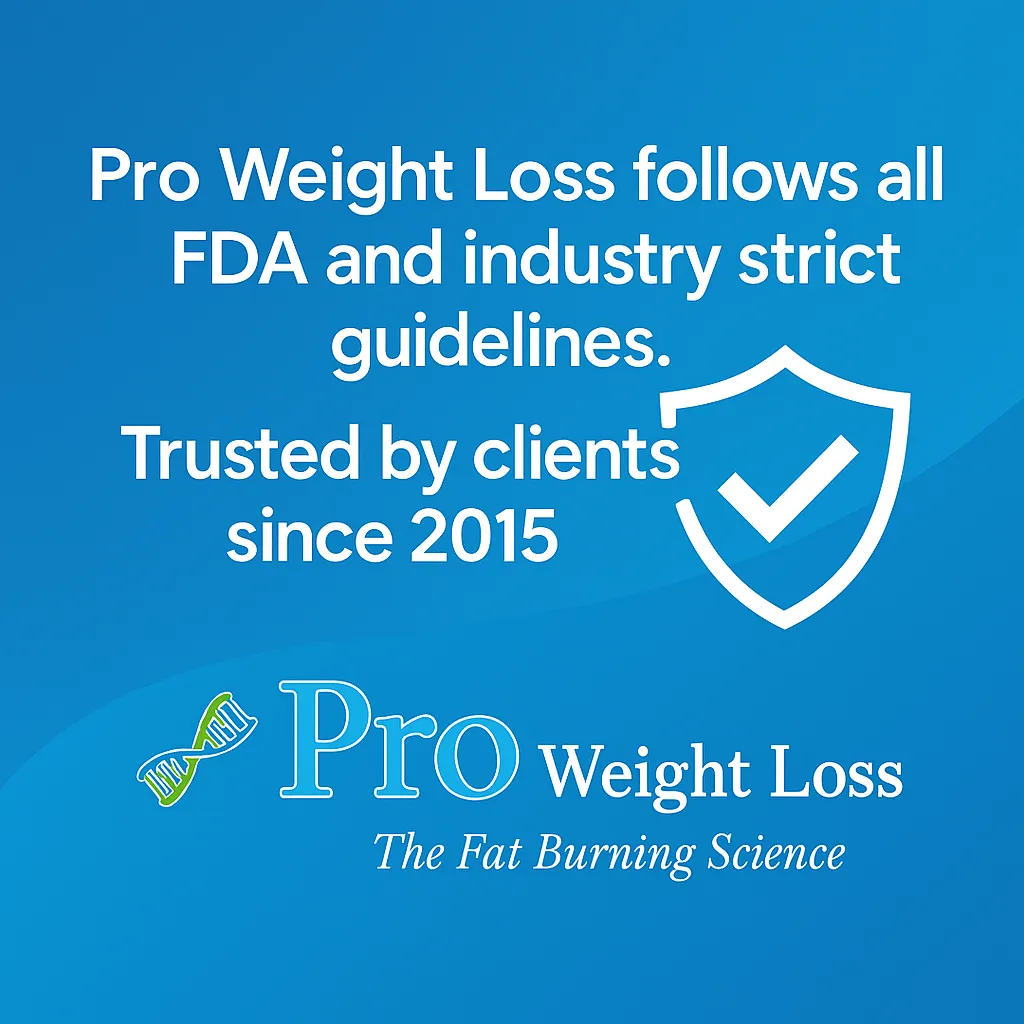 At Pro Weight Loss, your success is our priority — and that starts with earning your trust. Unlike many programs, you cannot simply buy one of our plans online. Every client begins with a private phone consultation because we need to make sure we can truly help you before you spend a dime. We also stand behind our programs with written agreements — we contract with you for a specific weight-loss goal, and your price never increases. If you follow the program, we commit to doing whatever it takes to help you reach your goal. Since 2015, we’ve built an outstanding reputation backed by thousands of happy clients and an A+ rating. We have been registered with the Massachusetts Corporate System since 2015 and follow all FDA strict guidelines and procedures, giving you complete confidence that you’re working with a trusted, established, and transparent company.